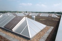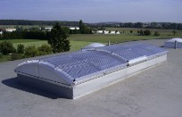 Sie bestehen aus hochwertigen Aluminium-Strangpressprofilen und sind in gewölbter Ausführung oder geneigter Sattelausführung in 30° oder 45° erhältlich. Die Verglasung besteht aus kaltverformten Polycarbonat-Hohlkammerplatten, die entsprechend den europäischen Brandschutzrichtlinien ausgeführt werden.